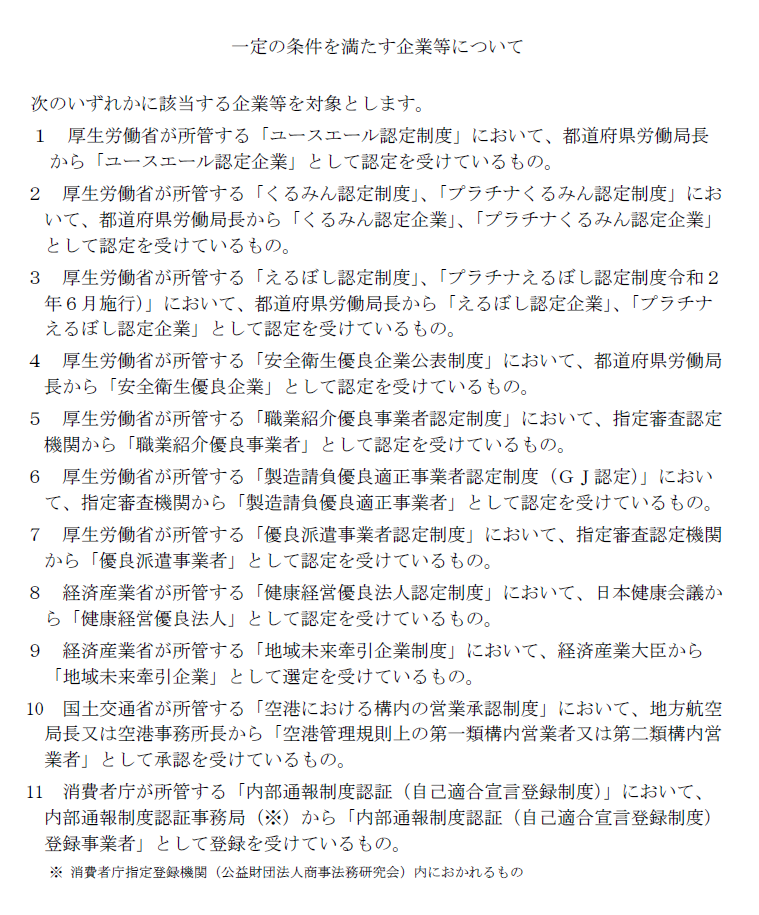 一定の条件を満たす企業等って言われても曖昧な言葉でわからないですよね。