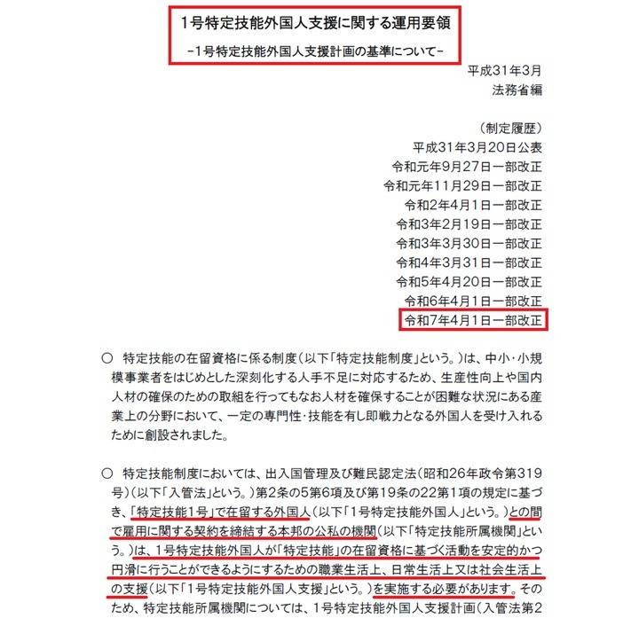 下の画像は出入国在留管理庁が公表している『運用要領別冊(支援)』の1ページ目です。
