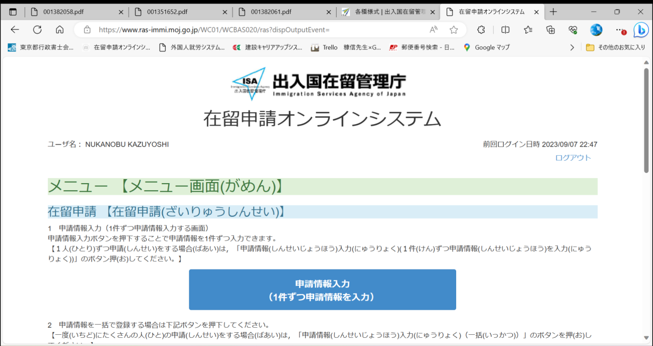 外国人就労管理システム(建設特定技能受入計画)は毎日どこかの企業に代理人行政書士としてログインしています。
