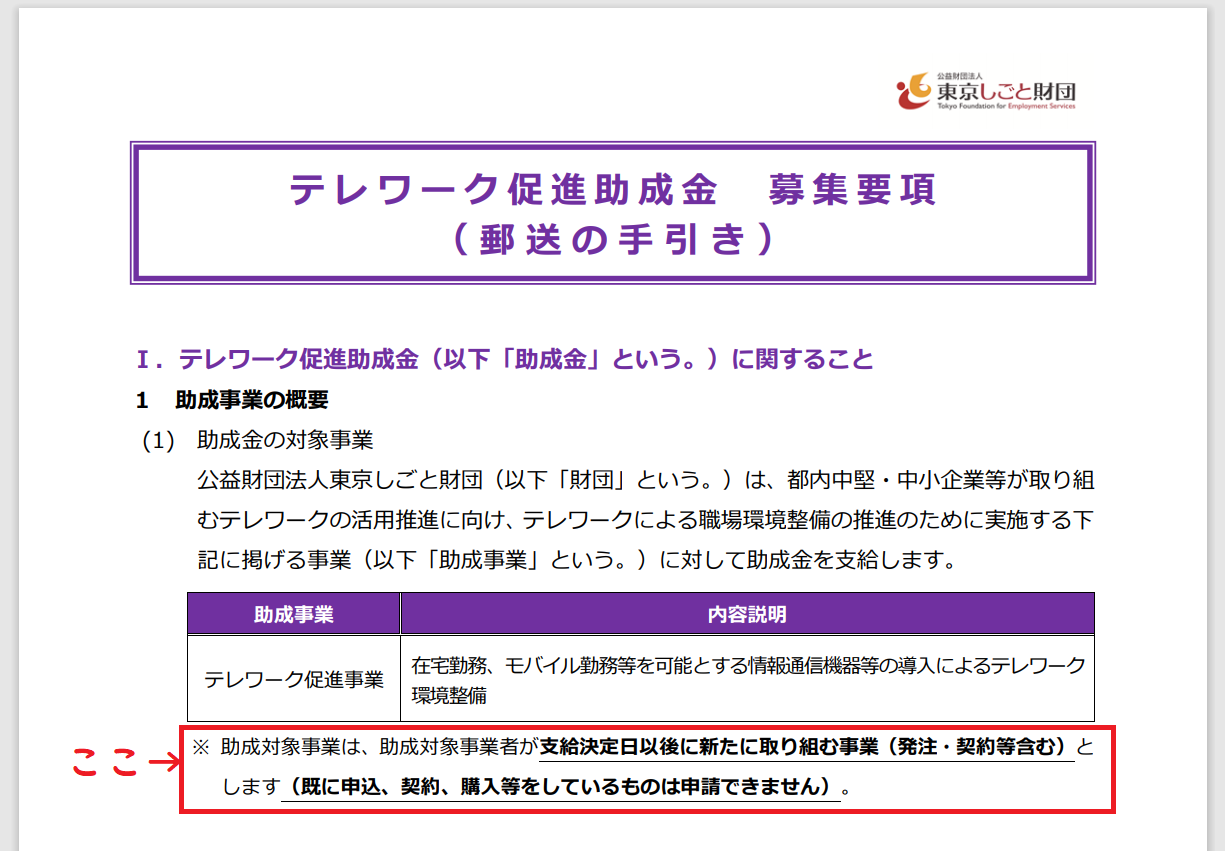 なお、テレワーク促進助成金はテレワークを実施する人数以上の機器の購入などは助成対象外ですし、1台10万円以上する割とスペックが高めなノートパソコンなども助成対象外(10万円以下なら対象です)となっております。