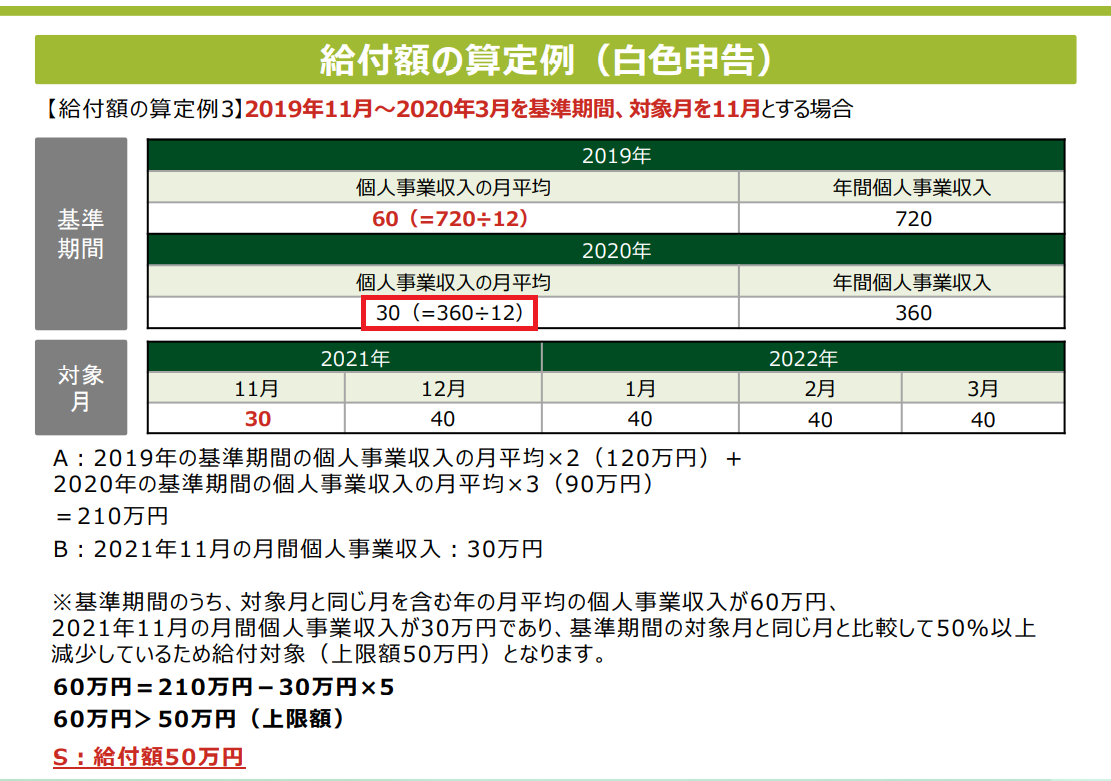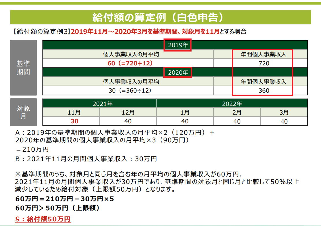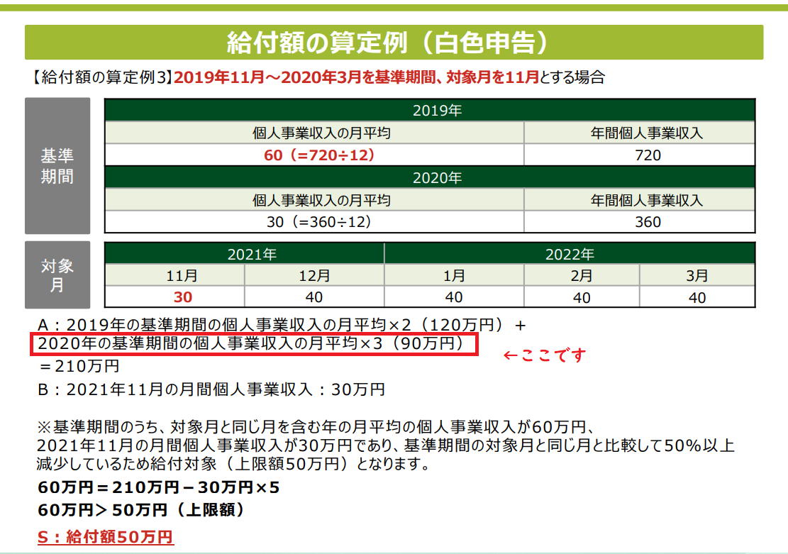 そして、基準年の仕組みを理解することで、個人事業主で白色申告の方は給付額が変わってくる可能性がございます。