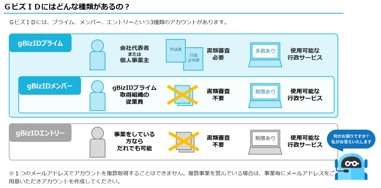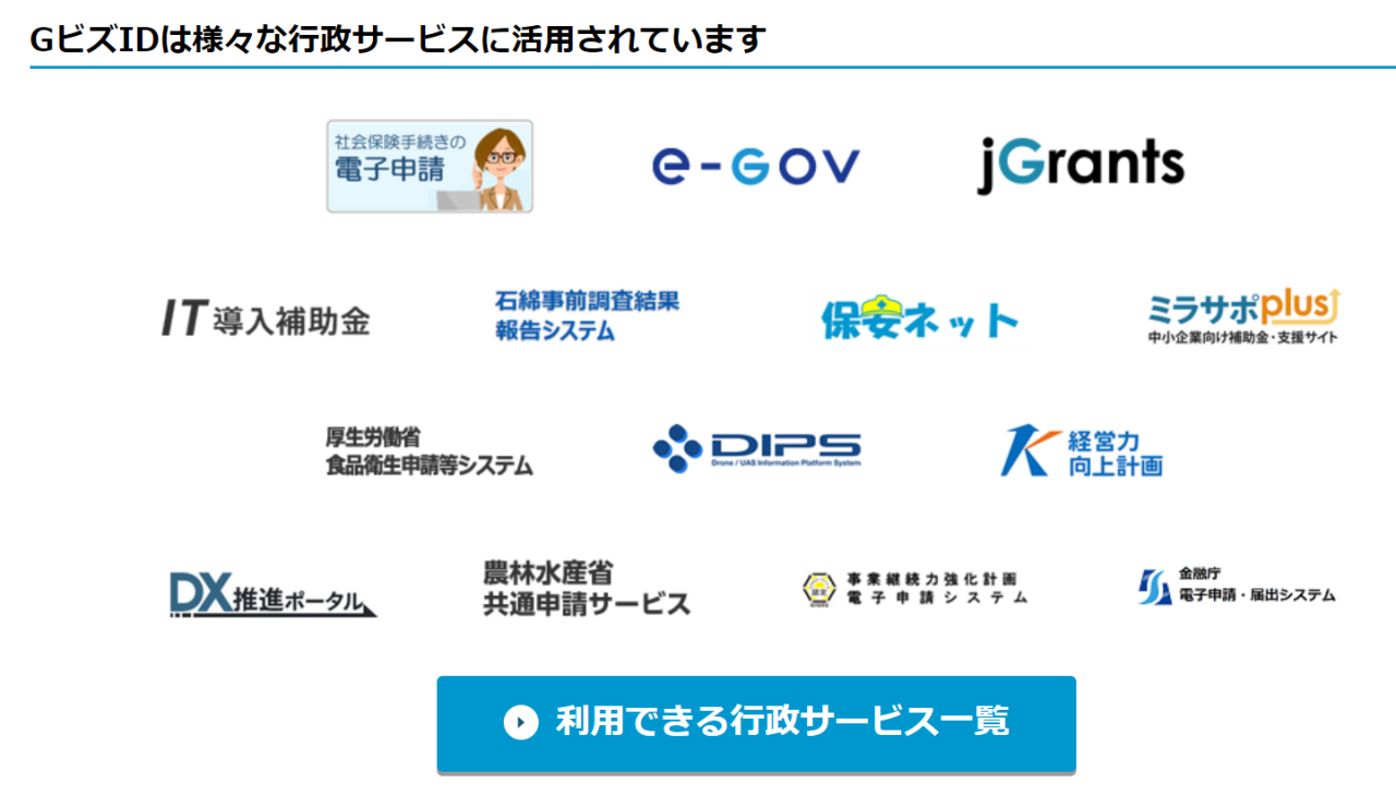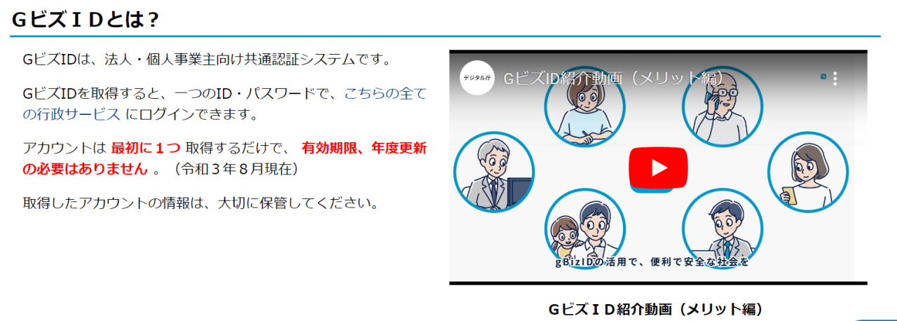 以下にGビズIDの公式サイトのスクリーンショットを掲載いたしますのでご参考ください。