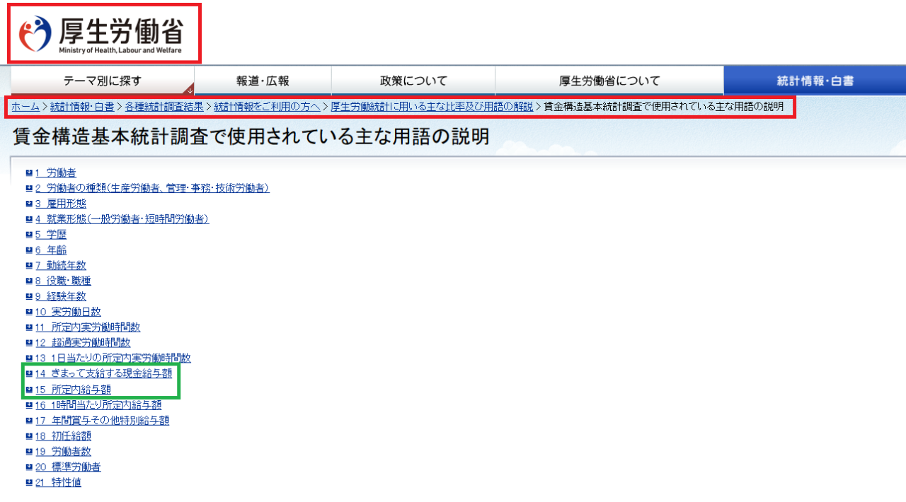 『所定内賃金』の定義を把握するためには、『きまって支給する現金給与額』を確認しないといけません。