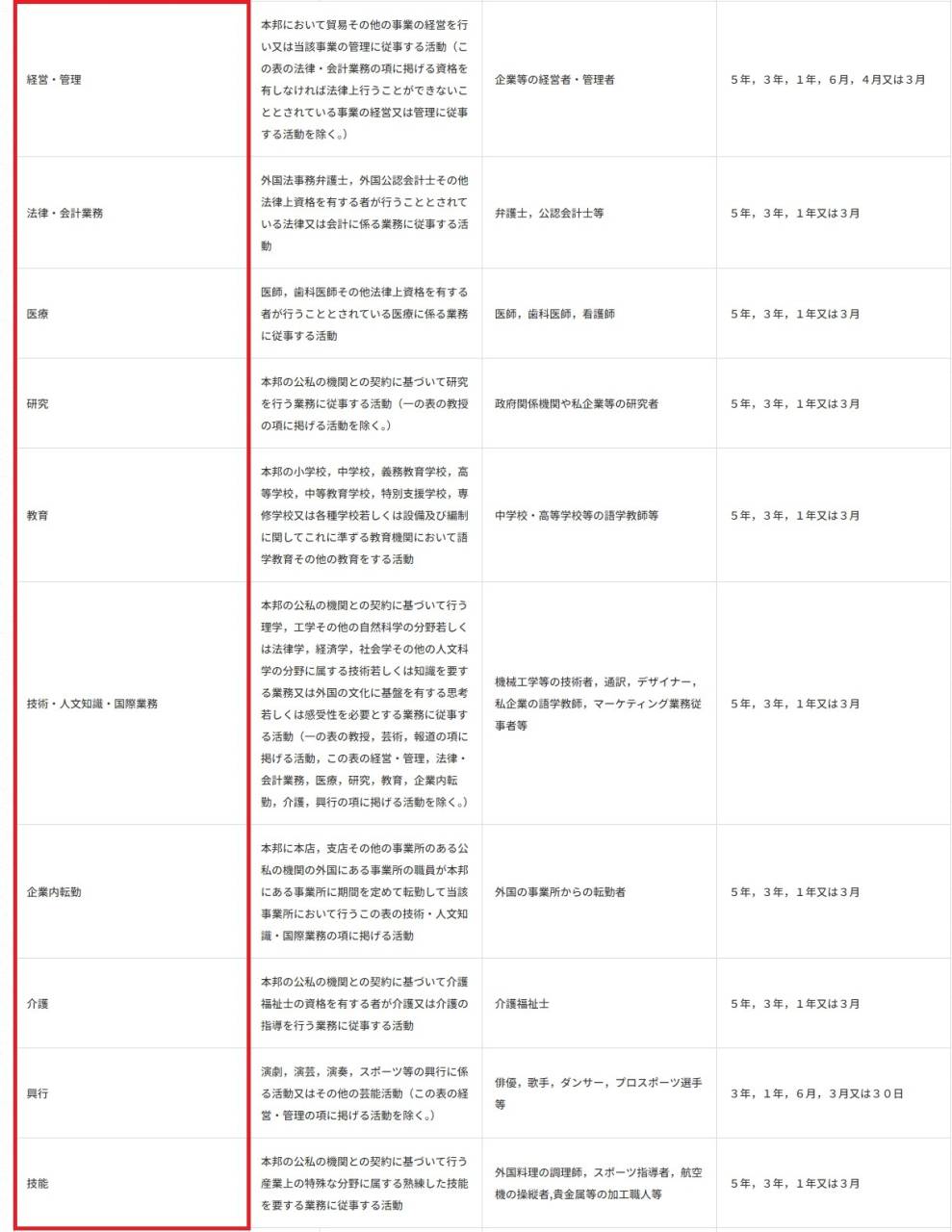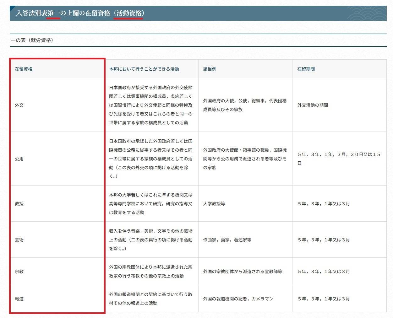 入管法別表第一の上覧の在留資格とは 行政書士葛飾江戸川総合法務事務所