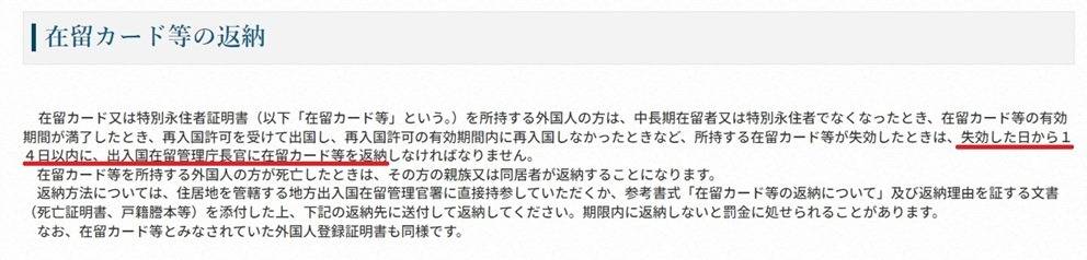 ・在留カードの有効期間が満了したときは失効した日から14日以内に返納