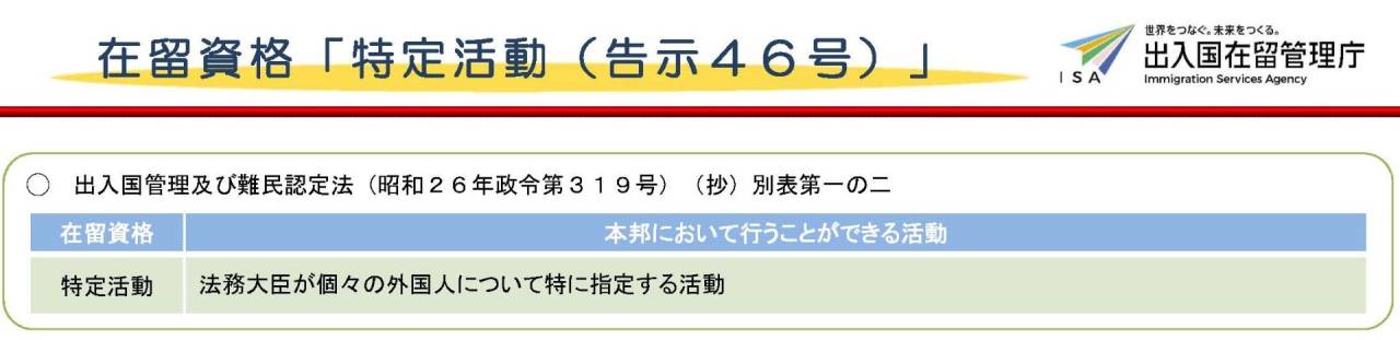 特定活動 告示第46号(通称N1特活)とは 行政書士葛飾江戸川総合法務事務所