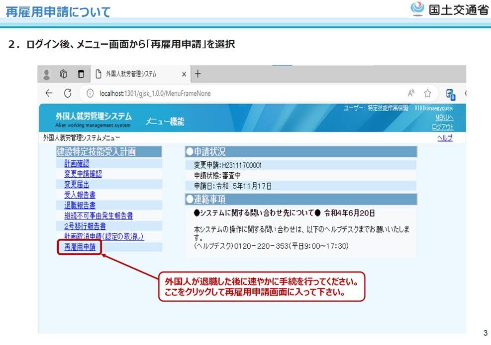 外国人就労管理システム(建設特定技能受入計画)の再雇用申請とは 神奈川県横浜市の方へ 行政書士葛飾江戸川総合法務事務所