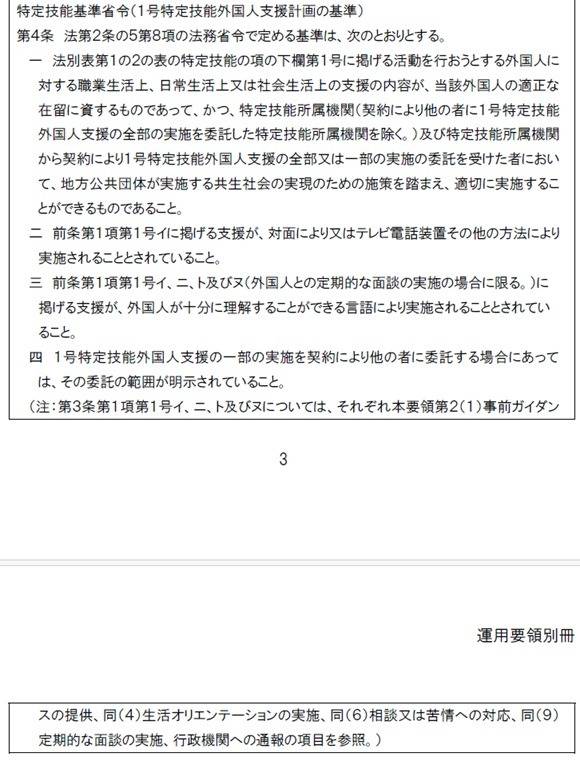 下の画像は出入国在留管理庁が公表している『運用要領別冊(支援)』の1ページ目です。